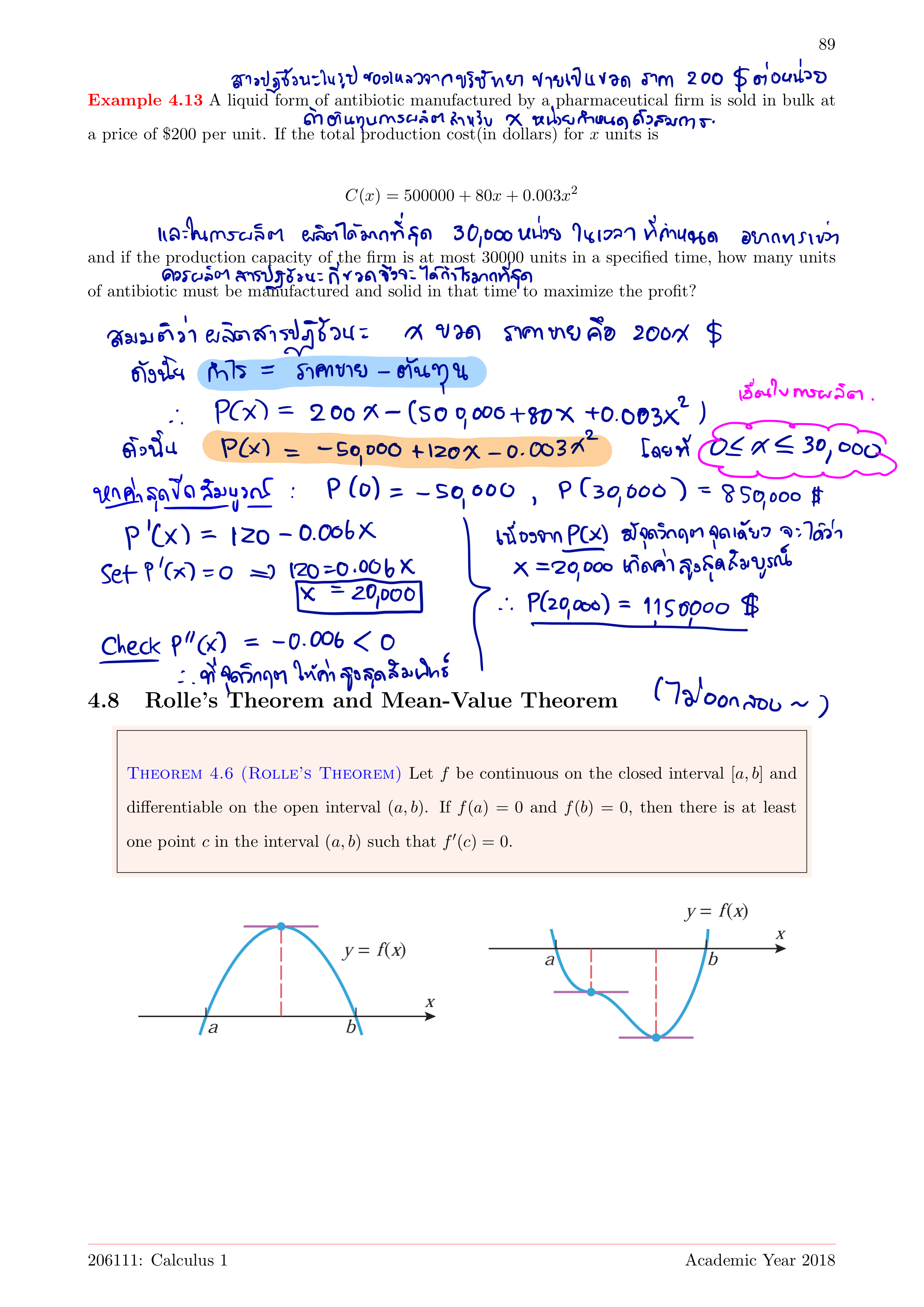 Tu 26 Feb2019 | การตรวจสอบโดยอนุพันธ์อันดับหนึ่ง – อันดับสอง, การร่างกราฟ EX 4.8โจทย์ปัญหาค่าสุงสุดและต่ำสุดสัมพัทธ์, ค่าสูงสุดและต่ำสุดสัมบูรณ์ Ex 4.13 |